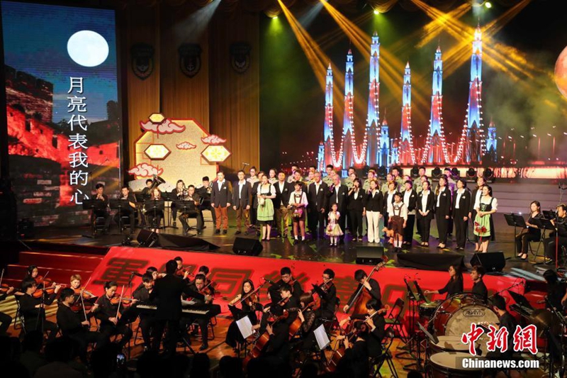 9月22日,香港演艺界明星和驻军文工队同台演出,上演军民同乐庆中秋热闹场面。当天,香港各界中秋探访团赴香港部队昂船洲军营慰问驻军官兵。在昂船洲海军基地有升国旗仪式、军乐团表演、军事夏令营足球队和香港明星足球队友谊赛、越野车巡游、演艺界明星和驻军文工队演出等。中新社记者 洪少葵 摄