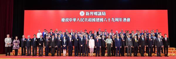 本网讯 9月28日,新界乡议局在乡议局大楼举行庆祝中华人民共和国成立69周年酒会。我办副主任何靖应邀出席,并与香港特区行政长官林郑月娥,香港立法会主席梁君彦等共同担任主礼嘉宾。