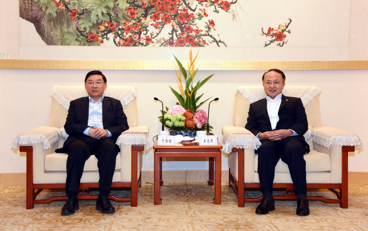 王志民主任会见 于伟国书记。(图片来源:中央政府驻港联络办)