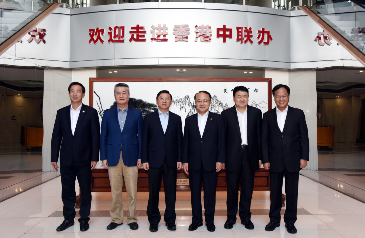 王志民主任(右三)、于伟国书记(左三)等合影留念。(图片来源:中央政府驻港联络办)