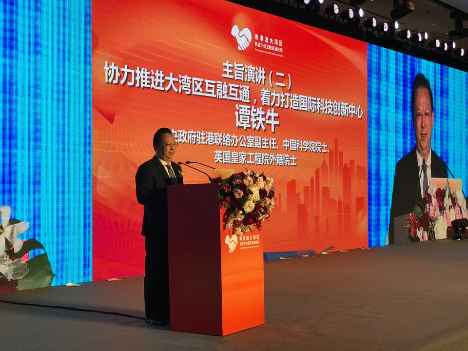 谭铁牛副主任的演讲以“协力推进大湾区互融互通,着力打造国际科技创新中心”为主题,围绕“改革开放”“粤港澳大湾区”“互融互通”3个关键词,结合亲身经历回顾了改革开放40年来国家在各方面取得的巨大成就,强调粤港澳大湾区互融互通与打造国际科技创新中心的密切关系,希望香港进一步把握和善用“一国两制”制度优势,结合国家所需,发挥香港所长,为促进粤港澳大湾区发展、维护香港长期繁荣稳定、实现中华民族伟大复兴做出新的更大贡献。