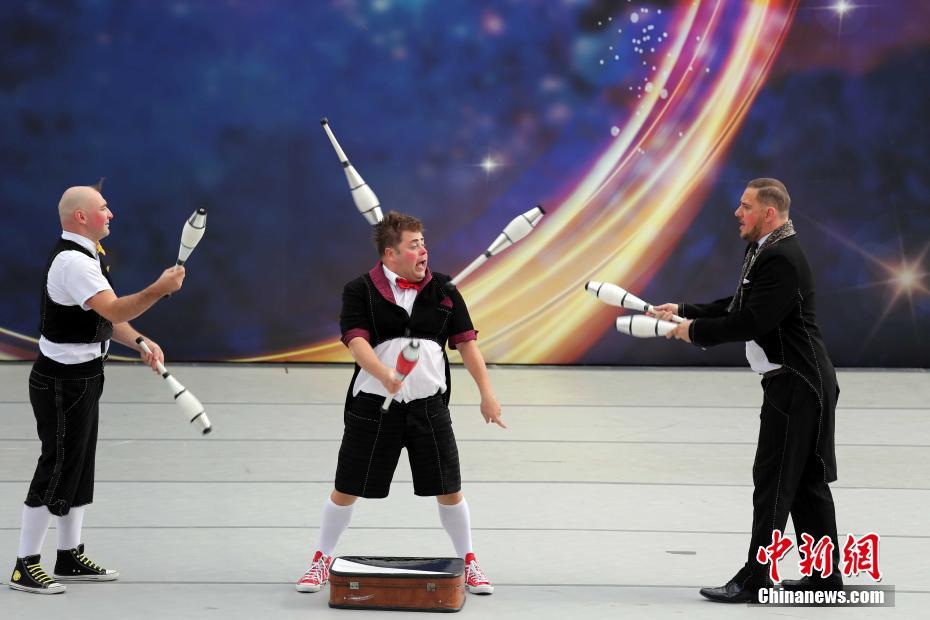 11月13日下午,乌克兰小丑-手技表演。当天,来自世界各地的马戏精英聚首香港,在香港文化中心露天广场演出“第五届中国国际马戏节”香港专场。 中新社记者 洪少葵 摄