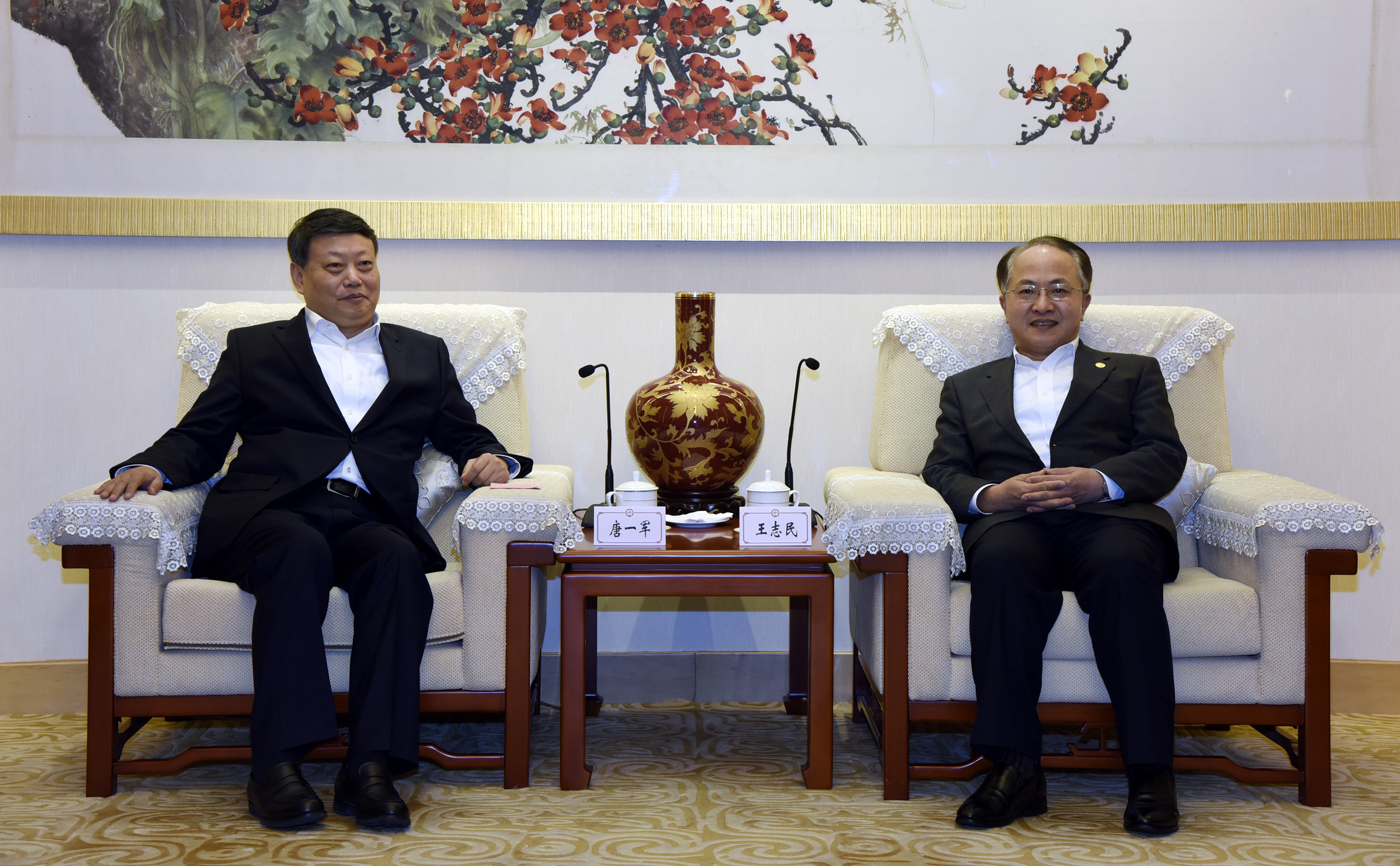 王志民会见唐一军。(图片来源:中央政府驻港联络办)