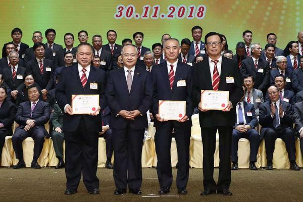 王志民主任向香港中华总商会常务会董代表颁发证书。(图片来源:中央政府驻港联络办)