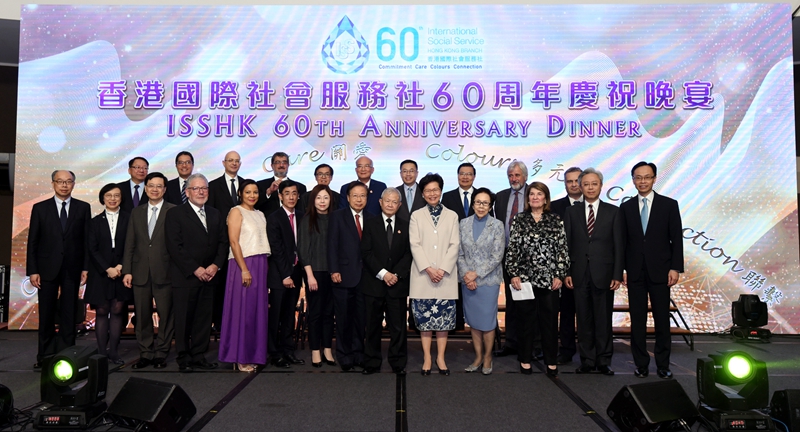 本网讯 11月30日晚,香港国际社会服务社在九龙湾国际展贸中心举办成立60周年庆祝晚宴。我办副主任何靖应邀出席,并与香港特区行政长官林郑月娥等共同主礼。特区政府官员、香港商界和社团领袖、社福机构负责人等约800名嘉宾参加。