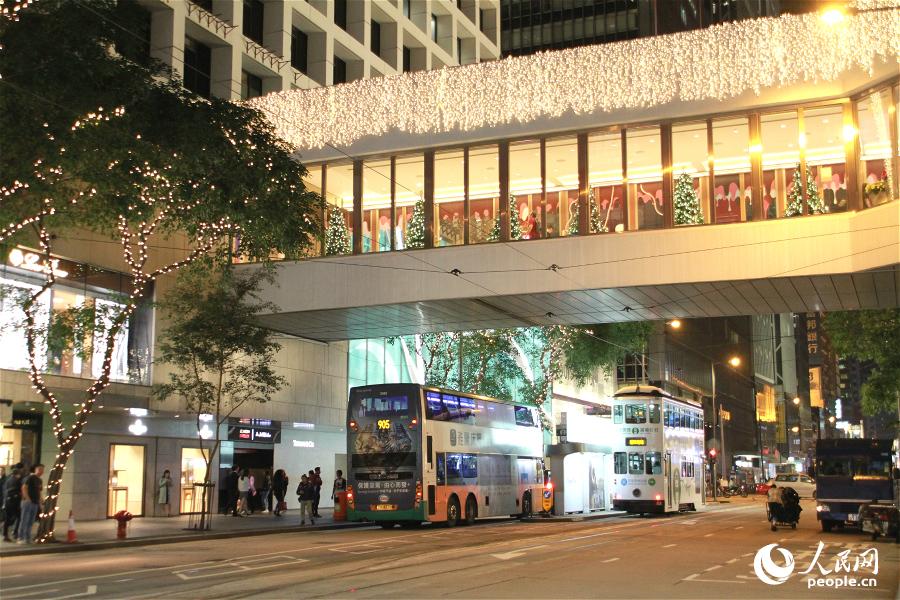 香港街头点亮圣诞装饰 节日气氛渐浓