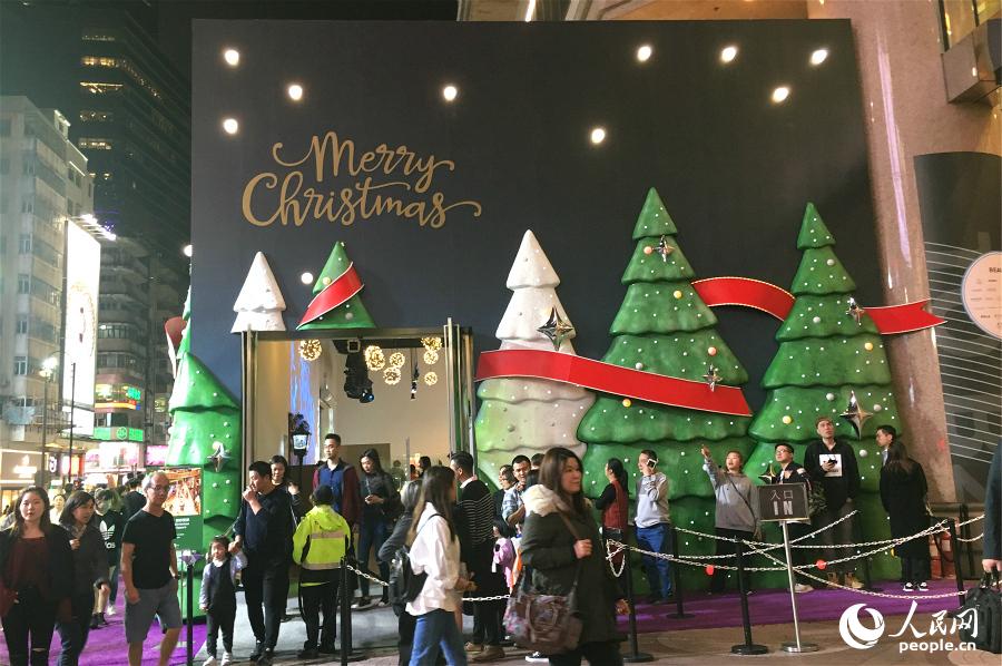 为迎接圣诞节的到来,香港街头装饰一新,点亮别具心裁的圣诞装饰,吸引不少市民和游客前来合影留念。在铜锣湾时代广场,微缩模型大师以模型微妙地展现出香港温馨欢乐的圣诞景象。