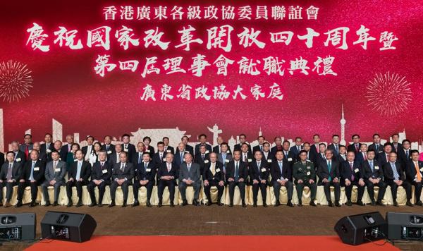 本网讯 12月5日,我办主任王志民应邀出席香港广东各级政协委员联谊会庆祝国家改革开放40周年暨第4届理事会就职典礼,并与全国政协副主席董建华、梁振英,全国政协港澳台侨委员会主任朱小丹,广东省政协主席王荣,外交部驻港特派员公署特派员谢锋,特区政府政务司司长张建宗、财政司司长陈茂波,全国政协港澳台侨委员会副主任黄兰发,解放军驻港部队副政委陈亚丁等共同主礼。香港特区政府有关官员、中央驻港机构有关负责人、广东省各级政协委员和香港各界人士2000余人参加典礼。