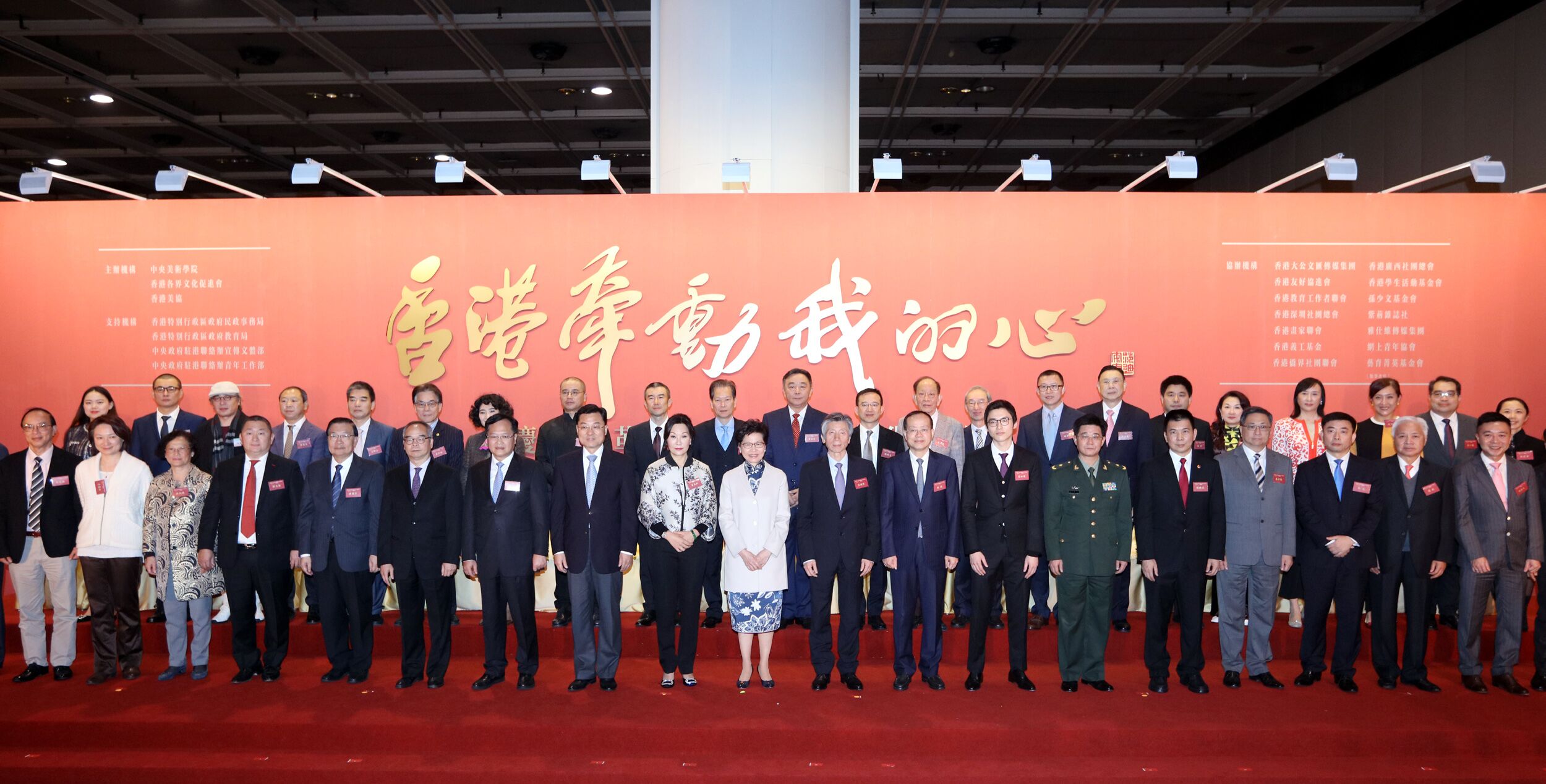 本网讯 12月19日,我办副主任杨健、陈冬出席在香港会展中心举行的香港牵动我的心——庆祝改革开放四十周年美术创作展开幕礼,并与香港特区行政长官林郑月娥、外交部驻港特派员公署特派员谢锋、驻港部队副政委陈亚丁等共同主礼。创作展主办单位、支持单位、协办单位负责人,参展艺术家,香港青少年代表及社会各界嘉宾300余人出席活动。