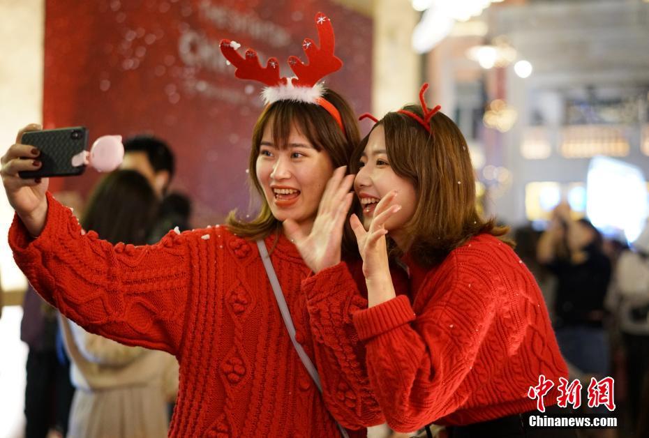 12月22日晚,香港湾仔利东街热闹非凡,圣诞灯饰璀璨夺目,一场如约而至的“大雪”吸引众多游客拍照留念。圣诞节临近,香港的大街小巷洋溢着浓浓的圣诞气氛,吸引市民和游客前来感受圣诞气氛。 中新社记者 张炜 摄