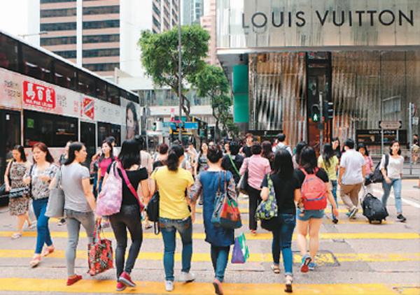 图为游客在香港中环商业区一带参观购物。新华社记者 李鹏 摄
