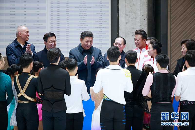 2月1日,中共中央总书记、国家主席、中央军委主席习近平在北京看望慰问基层干部群众,考察北京冬奥会、冬残奥会筹办工作。这是1日下午,习近平在国家冬季运动训练中心勉励正在训练备战的运动员、教练员。 新华社记者 鞠鹏 摄