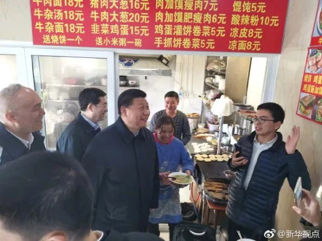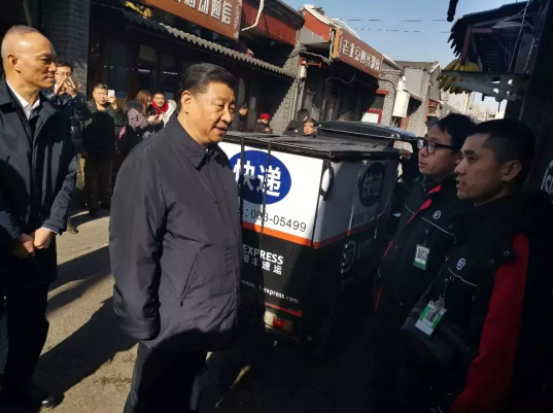 2月1日中午,习近平结束在北京市前门东区看望慰问乘车返回途中,特意走进位于前门石头胡同的快递服务点、小吃店,看望仍在工作的“快递小哥”等劳动者,了解他们工作和生活情况。