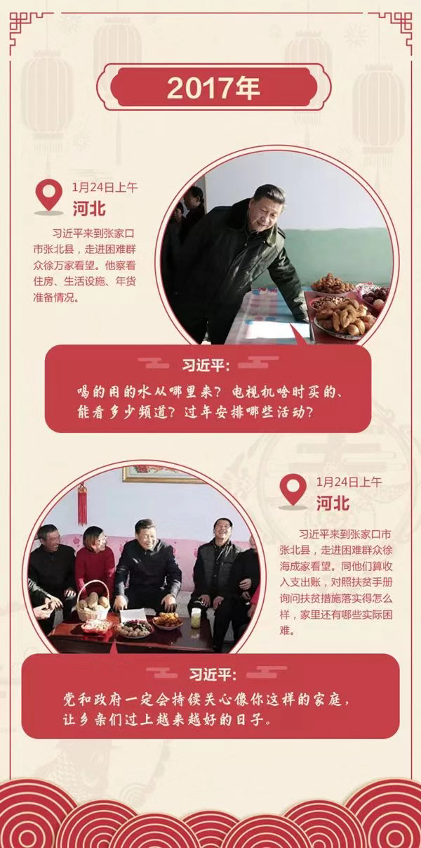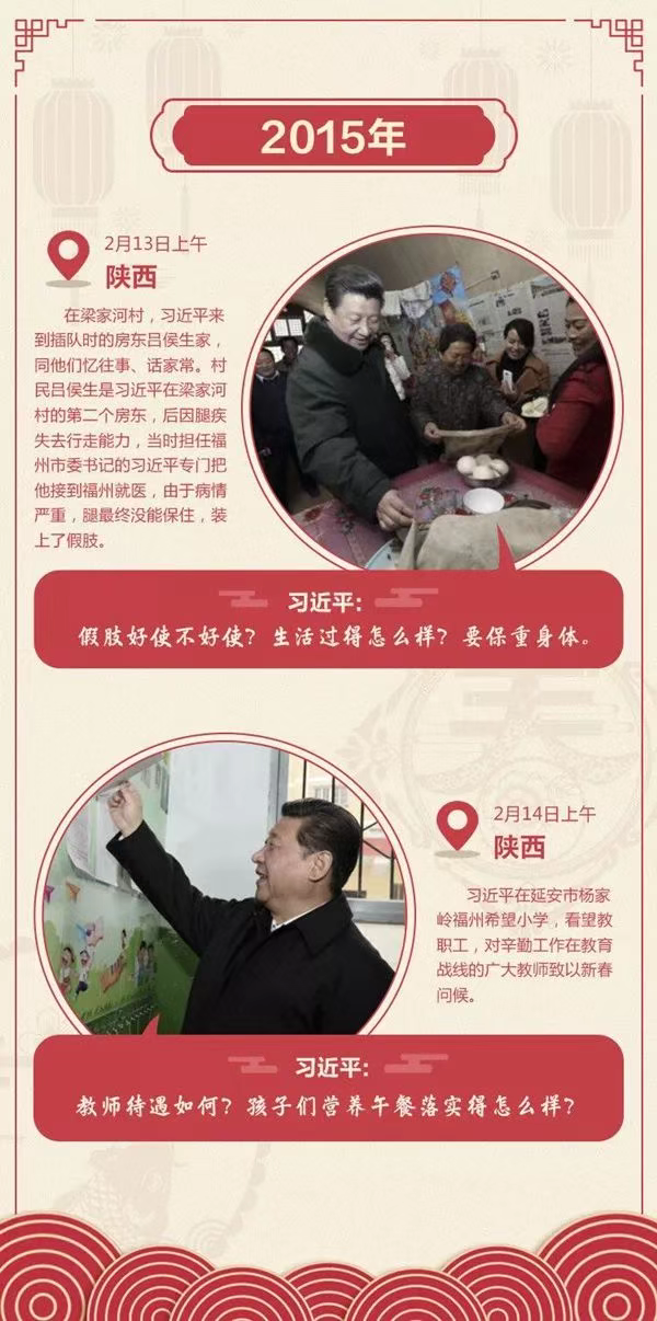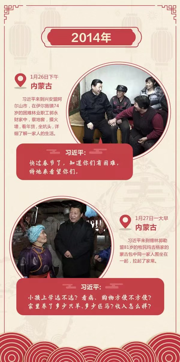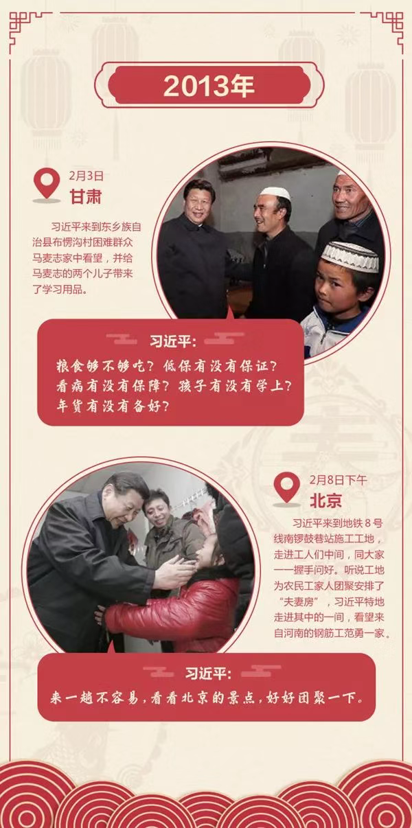 2月1日上午,中华民族传统节日农历春节来临之际,国家主席习近平在北京看望慰问基层干部群众,向全国各族人民致以美好的新春祝福。心系百姓,枝叶关情。每年春节前,习近平主席都会到群众中去,拉家常、问冷暖,听民声、解民意。一声声问候,一句句祝福,充满着主席关心关怀基层群众的真情。农历春节将至,特为您梳理主席心系百姓的暖心话语。