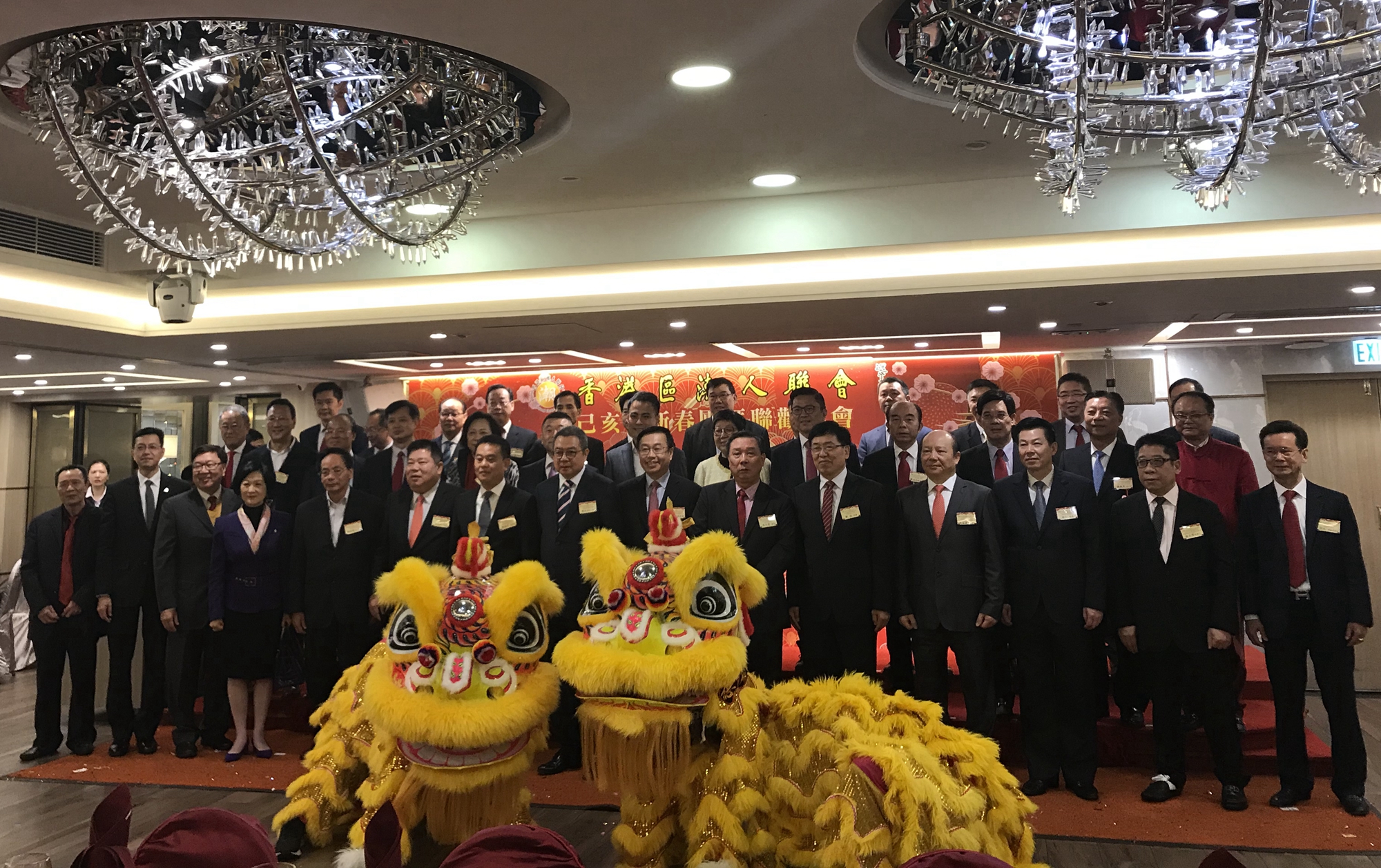香港区潮人联会会长张仲哲,全国人大代表叶国谦、吴秋北,全国政协委员苏长荣,香港立法会议员叶刘淑仪、郭伟强和有关区议员以及香港区潮人联会社团领袖及乡亲会员共350余人欢聚一堂,共贺新春。