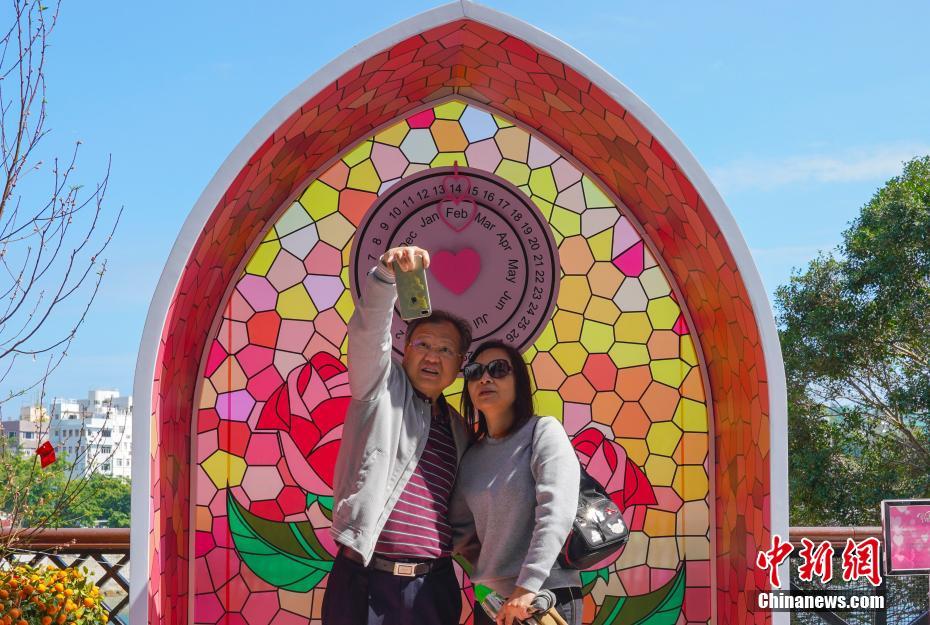 2月14日情人节,一对中老年夫妻在香港赤柱美利楼的“定情玫瑰小屋”里自拍留念。情人节不光是年轻人的节日,也是中老年人重温浪漫的日子。中新社记者 张炜 摄