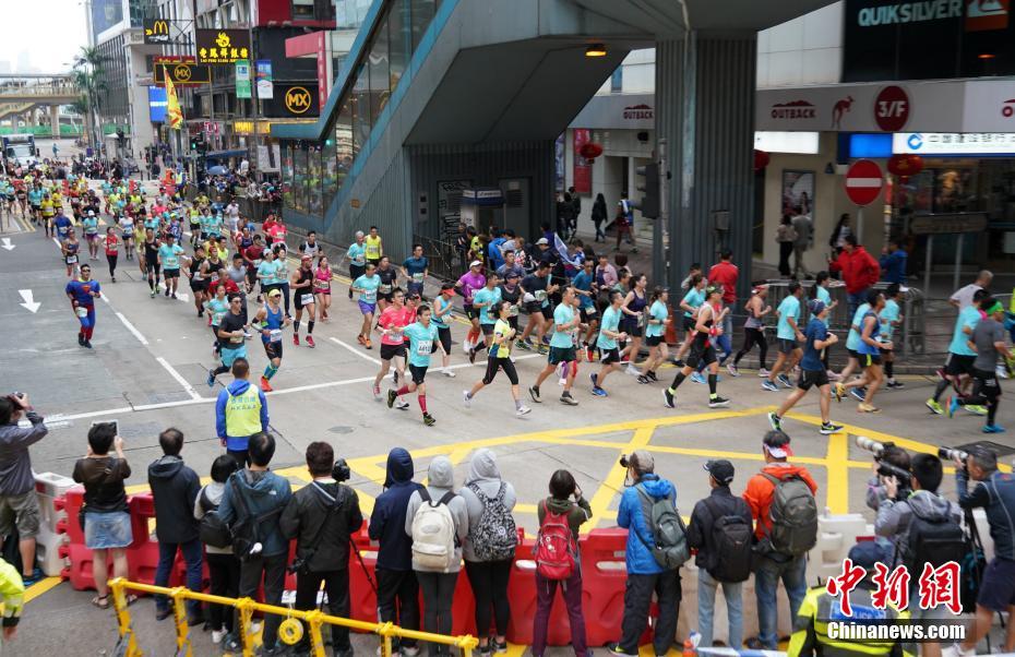 2月17日清晨,号称“亚洲最虐马拉松”的2019渣打香港马拉松开跑,74000名选手参加全程马拉松、半程马拉松、10公里赛跑等比赛。香港马拉松天没亮就开跑,赛道包括三座隧道和三座桥梁,赛道坡陡、路窄、弯道多,而且空气湿度大,因而被称为“亚洲最虐马拉松”。图为跑手进入轩尼诗赛道,众多市民和游客在沿途观看比赛。中新社记者 张炜 摄