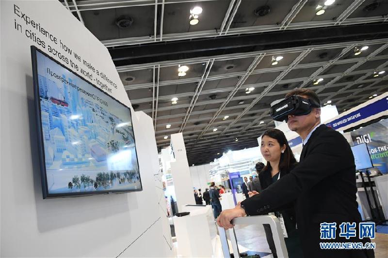 3月19日,观众在展会上参观体验。 当日,亚太铁路大会2019在香港会议展览中心举行。 新华社记者 吕小炜 摄