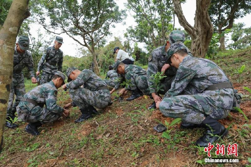 3月23日,第22届“香港植树日”活动在西贡蕉坑举行,解放军驻港部队派出约1000名官兵参与,共植树约4000棵。今年也是解放军驻港部队第20次参加这项植树活动。图为解放军驻港部队官兵正在种下树苗。 中新社记者 谢光磊 摄