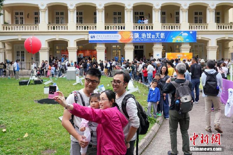 3月23日,拥有136年历史的香港天文台举行一年一度的开放日活动。今届活动主题是“太阳、地球和天气”。许多家长带着自己的孩子前来参观,了解与生活息息相关的气象知识。图为开放日吸引众多市民前来参观。 中新社记者 张炜 摄