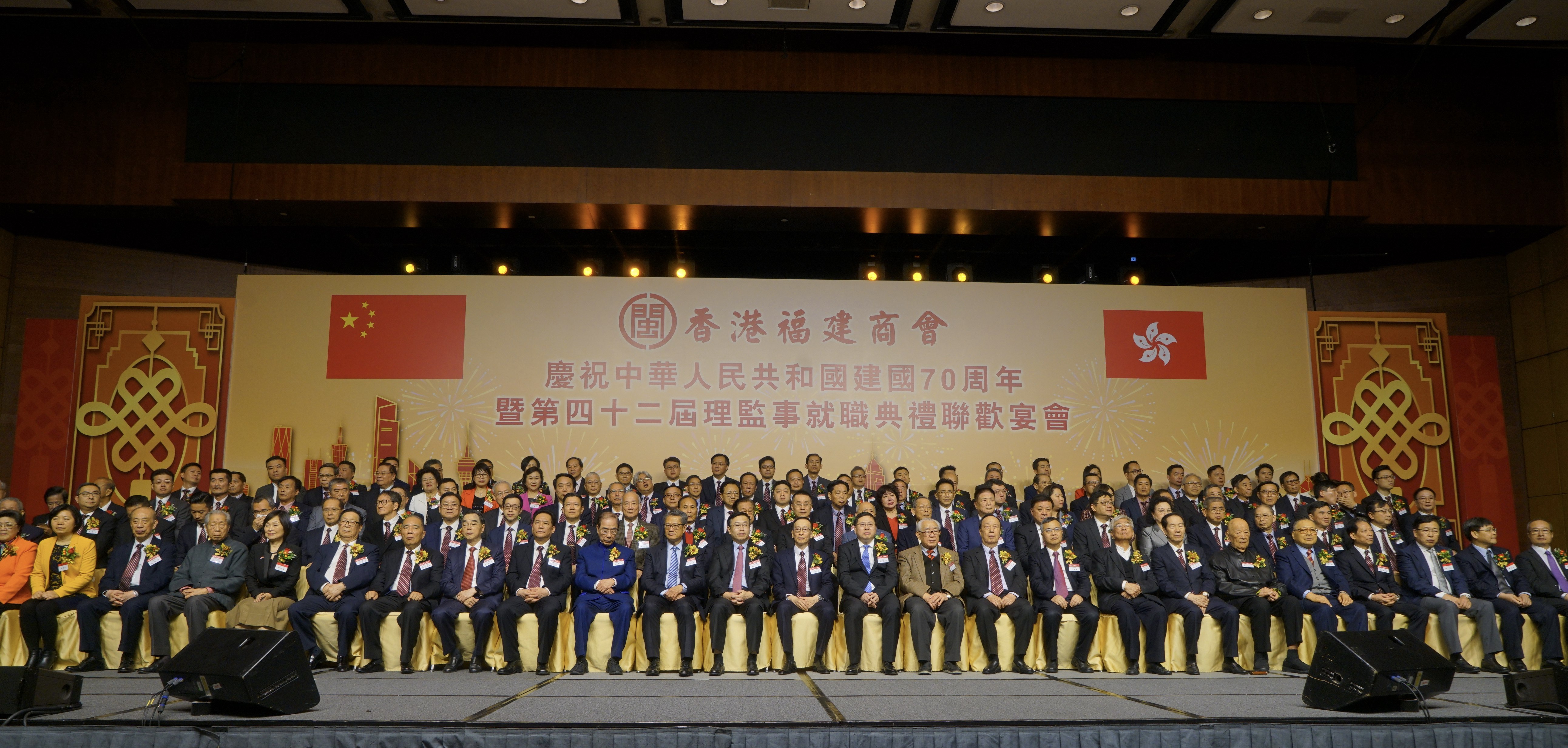 本网讯 3月24日,我办副主任何靖应邀出席香港福建商会庆祝中华人民共和国建国70周年暨第42届理监事就职典礼联欢宴会,并与特区政府财政司司长陈茂波、外交部驻港公署副特派员宋如安、福建省委统战部副部长陈飞等共同主礼。