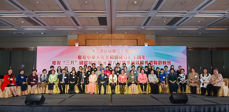 仇鸿出席港区妇联代表联谊会庆祝新中国成立七十周年、“三八”国际妇女节暨第六届理事会就职典礼联欢晚会。(图片来源:中央政府驻港联络办)