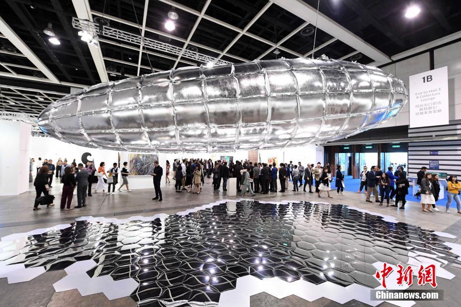 3月27日,艺术家李昢的10米长柏林飞船艺术品,相当触目。香港巴塞尔艺术展吸引来自36个国家及地区包括亚洲、欧洲、南北美洲、中东及非洲,共242间优秀的国际艺廊。参展艺廊呈献由新晋及知名艺术家创作的顶级现代及当代艺术作品。当中,艺聚空间展区呈献12件博物馆规模装置艺术,其中八件于香港展会首次展出,展区主题为Still We Rise,回顾过去并思索未来,聚焦于当下迷失与无常的议题,展区将来自不同背景及世代的艺术家集聚一堂,他们将平平无奇的材料重新组合,以此来展现当今世界的复杂性。 中新社记者 李志华 摄