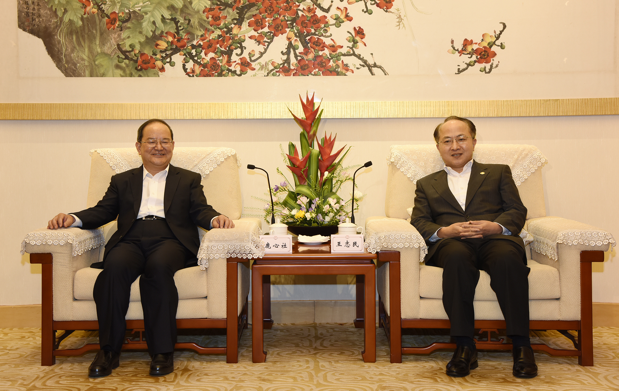 王志民会见鹿心社。(图片来源:中央政府驻港联络办)