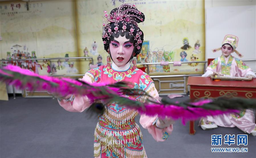 陆瑞徽(左)和利文喆在表演折子戏《艳曲醉周郎》(6月8日摄)。 声辉粤剧推广协会成立于2003年,是香港重要粤剧艺术团体之一,致力于向青少年推广粤剧。协会目前有两个初班,3个中班,一个青少年班。粤剧又称“广东大戏”,表演技艺包括“唱做念打”,即唱功、身段、台词、武打,主要流行于广东、广西和香港、澳门等地区。2009年,粤剧被列入联合国教科文组织人类非物质文化遗产代表作名录,今年正逢十周年。 新华社记者 吴晓初 摄陆瑞徽(左)和利文喆在表演折子戏《艳曲醉周郎》(6月8日摄)。 声辉粤剧推广协会成立于2003年,是香港重要粤剧艺术团体之一,致力于向青少年推广粤剧。协会目前有两个初班,3个中班,一个青少年班。粤剧又称“广东大戏”,表演技艺包括“唱做念打”,即唱功、身段、台词、武打,主要流行于广东、广西和香港、澳门等地区。2009年,粤剧被列入联合国教科文组织人类非物质文化遗产代表作名录,今年正逢十周年。 新华社记者 吴晓初 摄