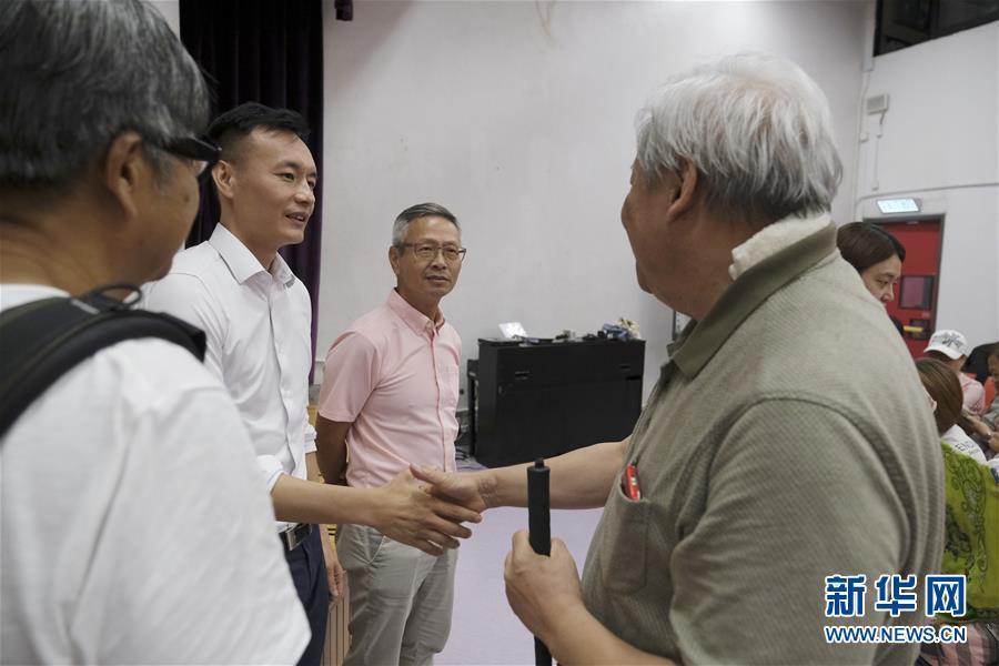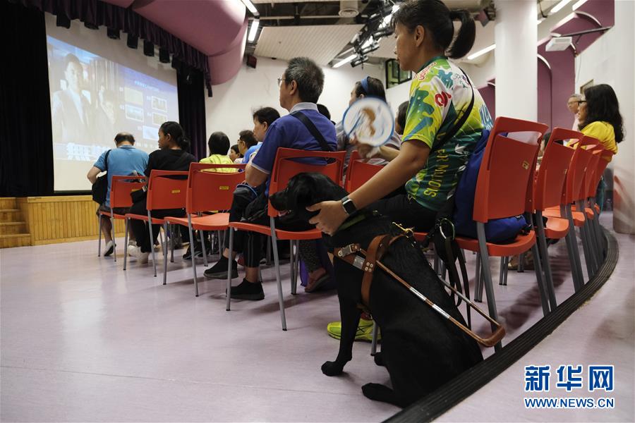 在香港盲人辅导会的一个小礼堂,视障人士在等待电影放映(6月20日摄)。新华社发(王申 摄)
