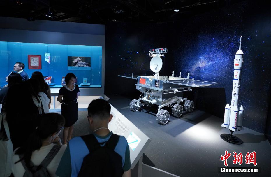 7月2日,香港庆祝中华人民共和国成立70周年重点活动——“现代化之路:共和国七十年”展览在香港历史博物馆举行开幕典礼,展览通过170件来自中国国家博物馆的馆藏和约40件香港历史博物馆的藏品,配合多媒体及视听节目,从政治、经济、科教、文化、民生等方面展现70年来中国现代化建设的伟大成就,让观众了解新中国成立70年来国家的进步和现代化进程,增进香港青少年对国家的认识。图为“嫦娥三号”月面巡视探测器“玉兔号”月球车模型和运送神舟十号载人飞船升空的长征二号F运载火箭模型亮相展览。中新社记者 张炜 摄