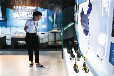 7月2日,冬奥组委展示厅,关蓓欣参观北京冬奥会和冬残奥会展示中心群众参与冰雪运动展区。