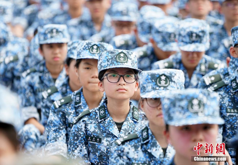 7月15日上午,第15届香港青少年军事夏令营在解放军驻香港部队新围军营举行开营典礼。来自香港100余所中学的600名青少年整齐列队,高举右手齐声宣誓入营。本届军事夏令营15日开营,28日结业,入营学生将在驻港部队官兵的指导下,在军营进行学习、训练和生活。自2005年7月推出青少年军事夏令营以来,累计有4300名香港青少年学生参加。图为本届夏令营入营学生中包括270名女生。中新社记者 张炜 摄