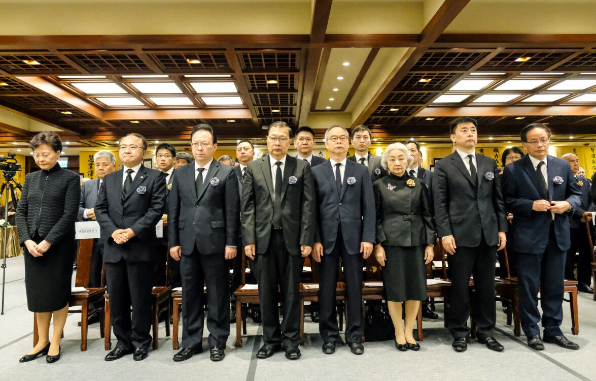 林郑月娥行政长官、王志民主任、谭铁牛副主任等出席智慧长老圆寂追思赞颂仪典。(图片来源:中央政府驻港联络办)