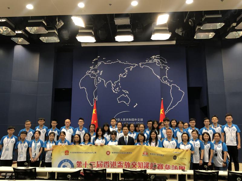 新中国成立70周年纪念日前夕,第十三届“香港杯”外交知识竞赛参访团先后到访京、黔两地,行程密集多元化,在北京参观了宇航员训练大厅,与外交部发言人耿爽和青年外交官面对面交流,在贵州重温红军长征的峥嵘岁月。相关负责人表示,是次参访旨在加强香港中小学生对国家的了解,感受新时代中国特色的大国外交,增强对国家的认同感与爱国情怀,了解并把握国家为香港青年提供的发展机遇。参访团员表示,通过此行自己对国家的了解变得真实而深入,亦感慨国家今日之和平稳定来之不易,包括香港学生在内的青年一代应好好珍惜。