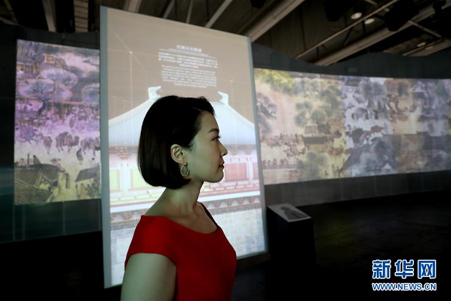 主办方工作人员介绍展览(7月26日摄)。(新华社 吴晓初 摄)