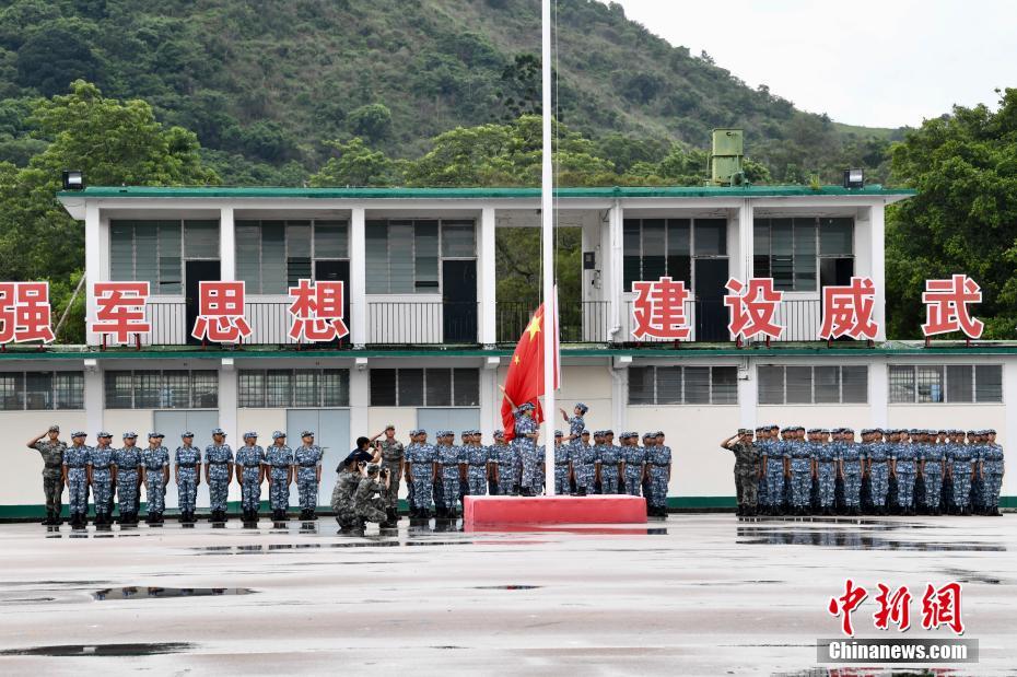 7月28日,香港新围军营举行升旗仪式。300名青少年穿着齐整的迷彩服集合在香港新围军营的操场上。学员们昂首挺胸列队进场,在庄严的升国旗仪式之后他们进行了岳家拳表演,用整齐的队形、熟练的动作、高昂的气势,向在场嘉宾和家长们展示过去半个月的训练成果。此届军事夏令营中,青少年营员们接受了体能训练、单个军人队列动作、战备基础、激光模拟对抗和地图使用等多项军事课目训练,参加了徒步行军、专题讲座、学唱歌曲、观看《致敬祖国》综艺演出等活动,分别赴昂船洲军营和石岗军营参观见学,度过了短暂而又充实的军营时光。(中新社 李志华 摄)