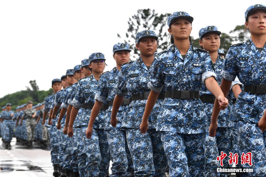 7月28日,女学员进场,精神奕奕。当天,300名青少年穿着齐整的迷彩服集合在香港新围军营的操场上。学员们昂首挺胸列队进场,在庄严的升国旗仪式之后他们进行了岳家拳表演,用整齐的队形、熟练的动作、高昂的气势,向在场嘉宾和家长们展示过去半个月的训练成果。此届军事夏令营中,青少年营员们接受了体能训练、单个军人队列动作、战备基础、激光模拟对抗和地图使用等多项军事课目训练,参加了徒步行军、专题讲座、学唱歌曲、观看《致敬祖国》综艺演出等活动,分别赴昂船洲军营和石岗军营参观见学,度过了短暂而又充实的军营时光。(中新社 李志华 摄)