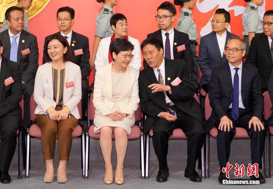 图为香港特区行政长官林郑月娥与朱德之孙朱和平交谈。(中新社 张炜 摄)