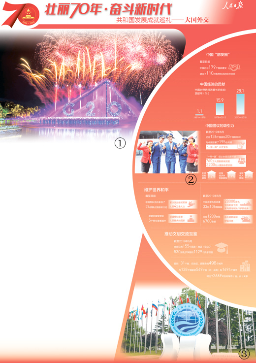 70年来,新中国与世界各国并肩携手,与国际社会风雨同舟。作为世界和平的建设者、全球发展的贡献者、国际秩序的维护者,中国理念日益成为国际共识,中国方案正在形成全球行动。