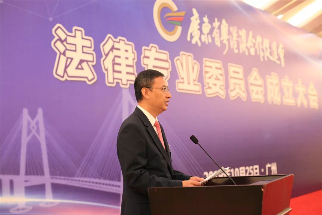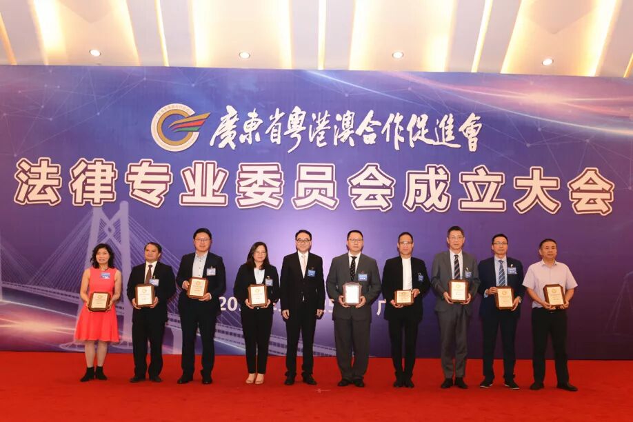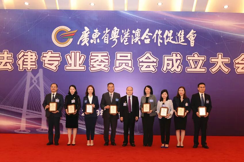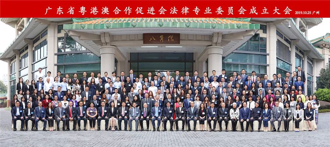 10月25日,广东省粤港澳合作促进会法律专业委员会成立大会在广州举行。广东省政府副秘书长林积,广东省政协原副主席唐豪,香港中联办法律部部长刘春华,澳门中联办法律部部长李雪飞,香港特区政府驻粤经贸办主任陈选尧,澳门特区政府法务局副局长钟颕仪,广东省港澳办副主任彭秋云,广东省司法厅二级巡视员杨锡武,广东省粤港澳合作促进会名誉会长何宁卡、执行会长林迪夫、监事长白玲,广东省律师协会会长肖胜方等嘉宾出席了成立大会,粤港澳三地法律界专业人士及单位代表共200余人参加。