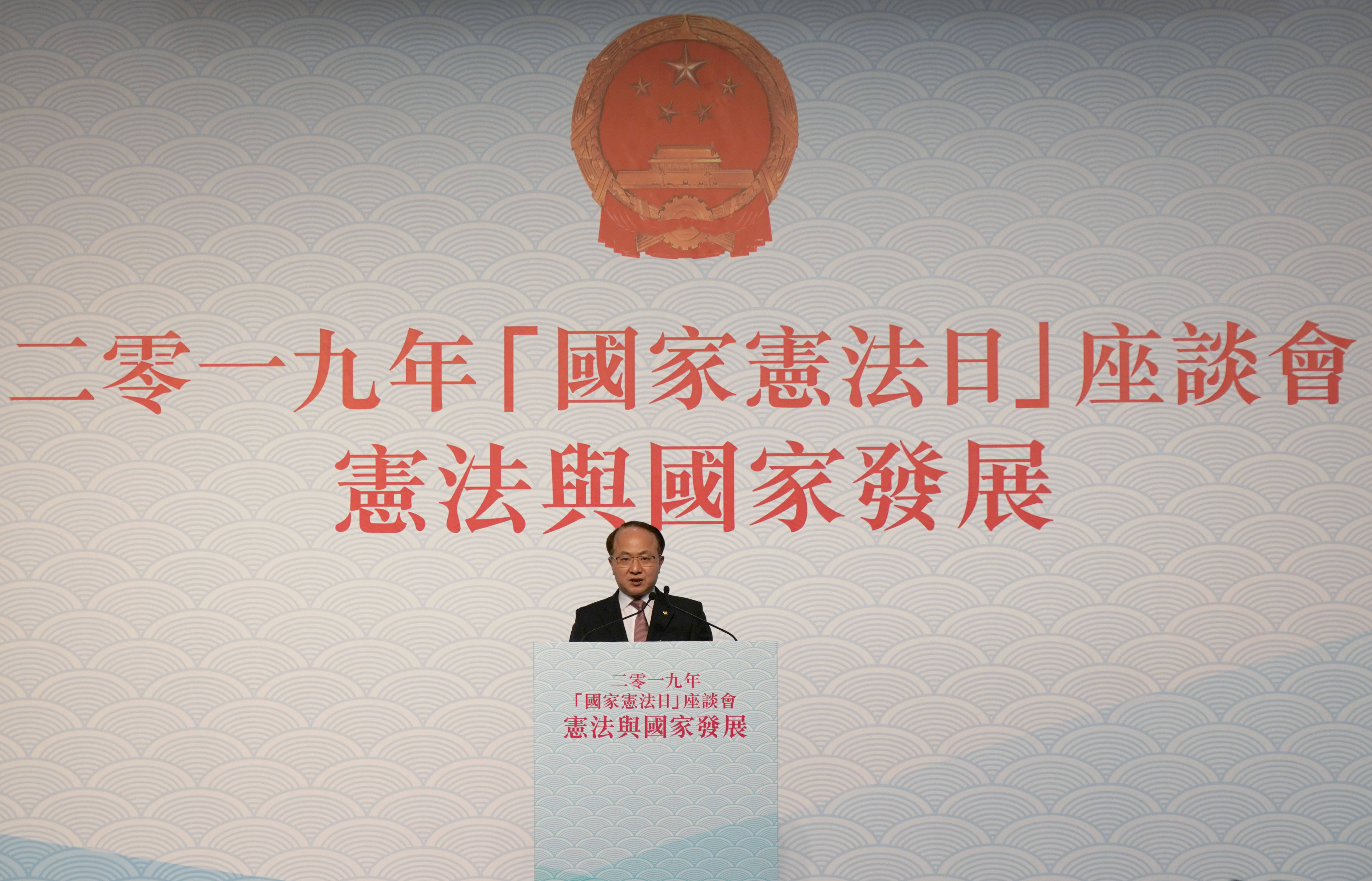 本网讯 12月4日,在特区政府和中央政府驻港联络办共同支持下,香港励进教育中心在湾仔会展中心举办2019年“国家宪法日”座谈会。这是香港特区连续第三年举办“国家宪法日”座谈会。