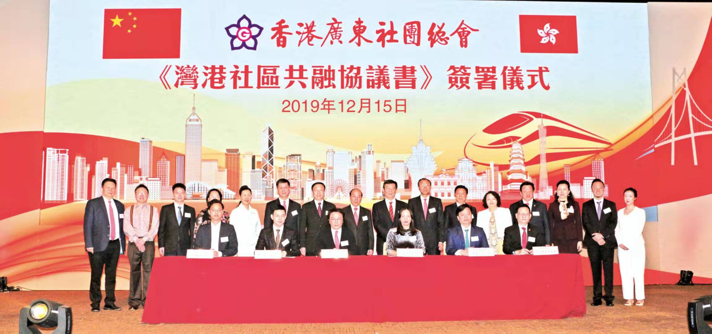 本网讯 12月15日,我办副主任何靖应邀出席香港广东社团总会《湾港社区共融协议书》签署仪式暨庆贺会员荣获授勋宴会,并与广东省委统战部部长黄宁生、副部长李焕春及深圳市委统战部部长林洁等共同主礼。