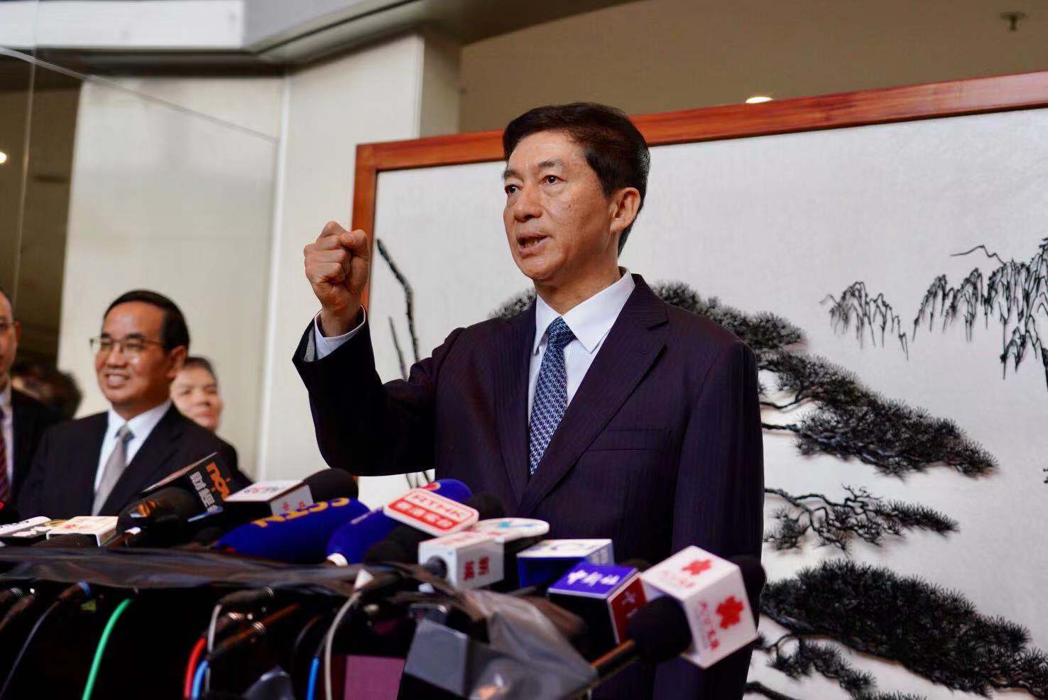 骆惠宁主任首次见香港传媒并讲话。(图片来源:香港大公文汇传媒集团)