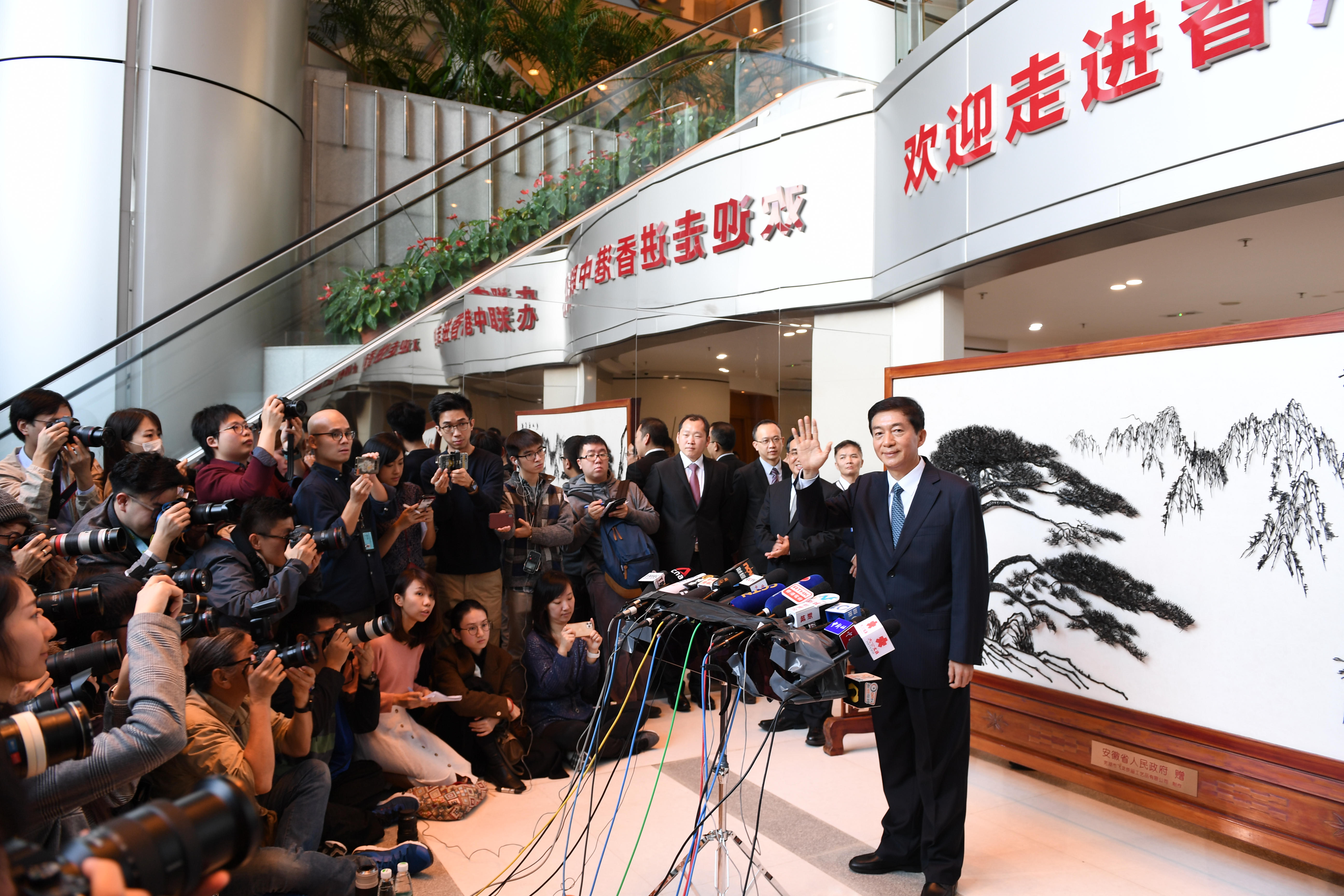 大家好!让你们久等了。我刚到中联办上班,同事告诉我,有记者在办公楼门口等候。今天风大。我说请媒体朋友进来,我在大厅与大家见面。从你们身上,我感受到了香港记者的勤奋和敬业。