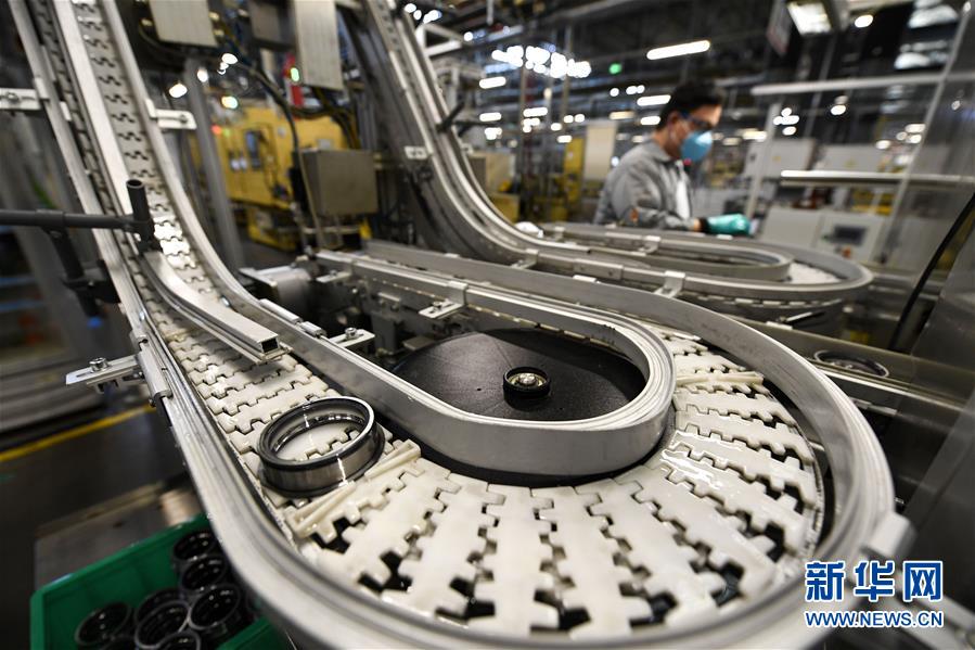 在宁夏银川市经济开发区内,舍弗勒(宁夏)有限公司员工在汽车轴承车间忙碌(3月11日摄)。(新华社记者 冯开华 摄)