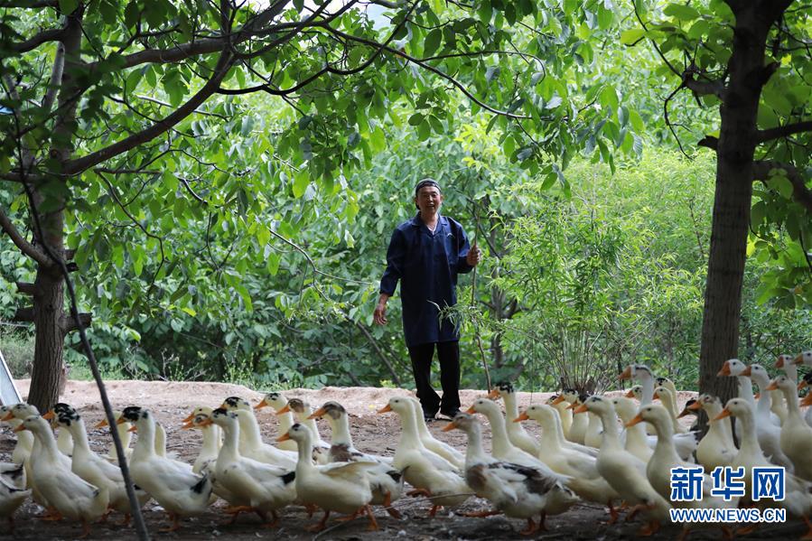 舟曲县曲瓦乡城马村村民在赶土鸭(7月16日摄)。甘肃省甘南藏族自治州舟曲县在脱贫攻坚过程中,结合当地资源优势与环境特点,大力发展特色农产品种植和林下养殖,促进当地农民增收致富。新华社发(杜哲宇 摄)