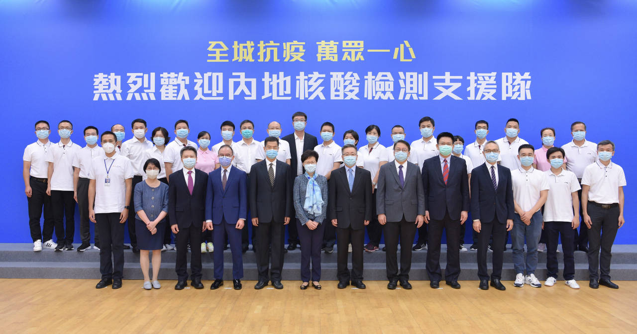 林郑月娥行政长官欢迎内地核酸检测支援队抵港。(图片来源:特区政府新闻处)