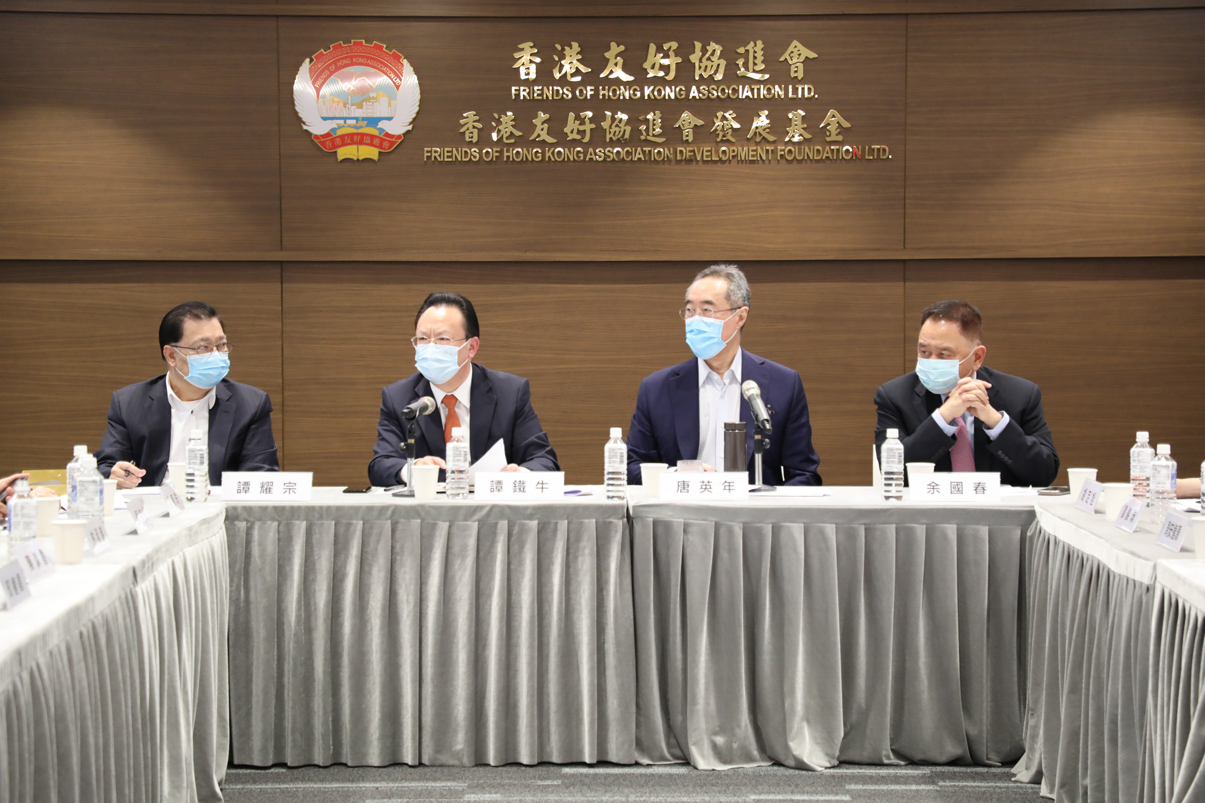 本网讯 2月24日下午,我办副主任谭铁牛应邀出席香港友好协进会举办的港区全国人大代表、全国政协委员、中华海联会理事坚定支持全面落实“爱国者治港”座谈会。