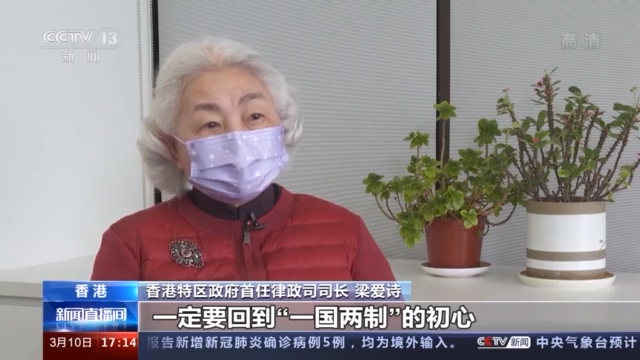 香港特区政府首任律政司司长 梁爱诗:一定要回到“一国两制”的初心,就是应该要“爱国者治港”,需要从制度上去把它落实,从法理上来讲,宪法给全国人民代表大会确立和制定香港的制度的权力,它要负责特区的制度的建设,我觉得中央政府做出这个决定是完全有法理根据的。